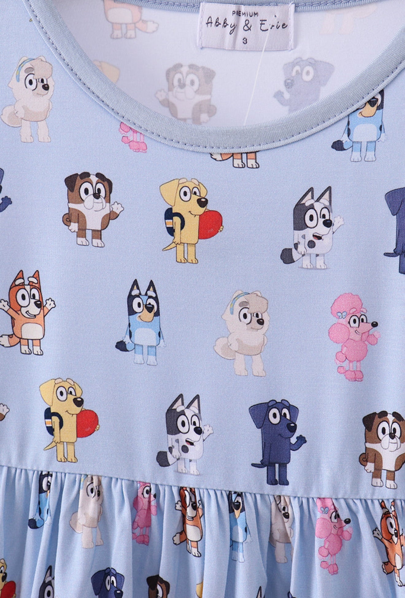 Your little one will be ready to play and twirl all day in our Bluey Friends Long Sleeve Twirl Dress! Made from a soft, stretchy cotton blend, this darling light-blue dress features a colorful all-over print of cheerful puppy pals. The flowy skirt adds just the right amount of twirl, while the long sleeves keep your little girl cozy through every season of fun.